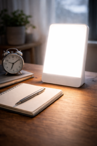 Lámparas de fototerapia: muchas personas con SAD mejoran con “light therapy”. En Canadá, CAMH la marca como el tratamiento principal para SAD, y NIMH la incluye como una de las opciones centrales. Importante: se recomienda hacerlo con orientación profesional, sobre todo si tienes problemas oculares o antecedentes de trastorno bipolar.